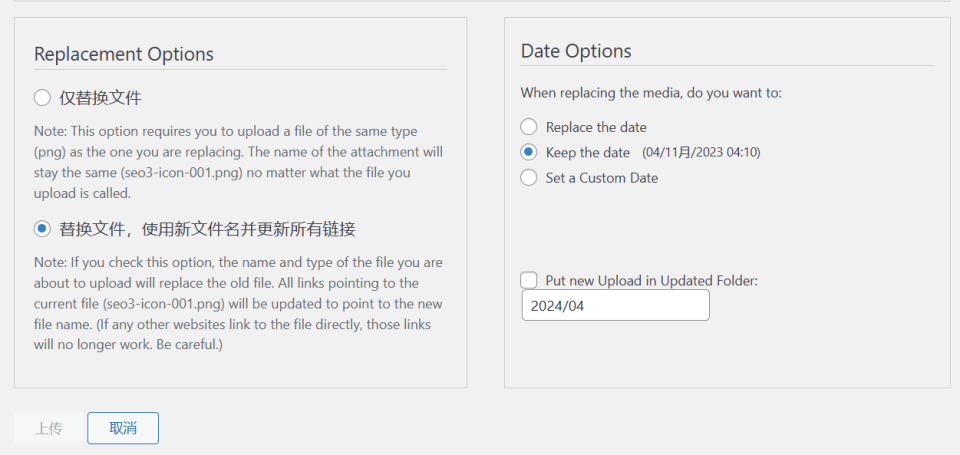 这个插件可以替换同格式的图片,只需要从媒体库进行替换就将会在网站上替换所有使用过这个图片的位置并且可以更新为最新的图片文件地址。